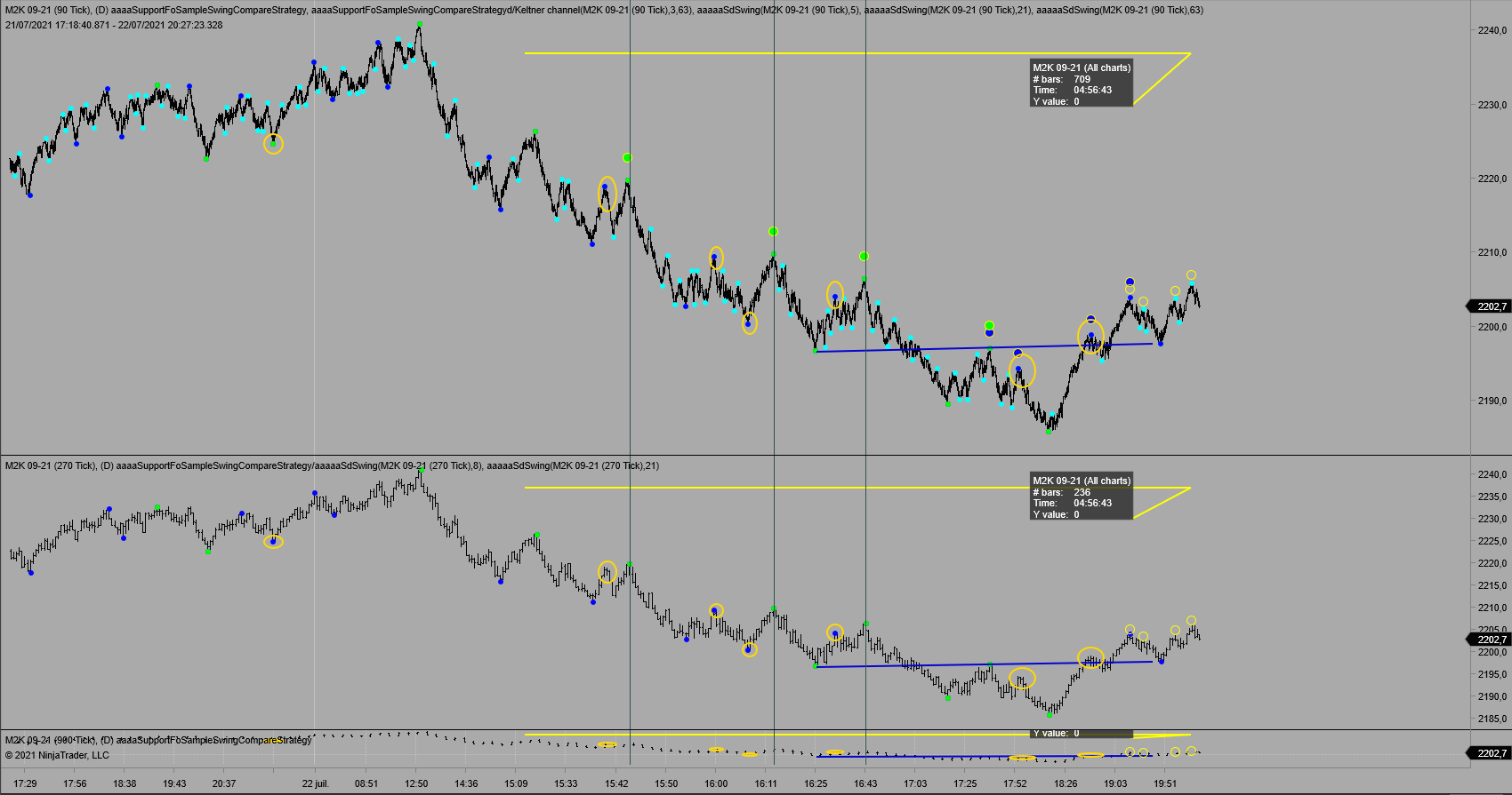 caution not to confuse the copy of the SingleDotSwing (aaaaaSdSwing) applied on charts for visual comaparison with the strategy, with NT Swing applied in the strategy.
