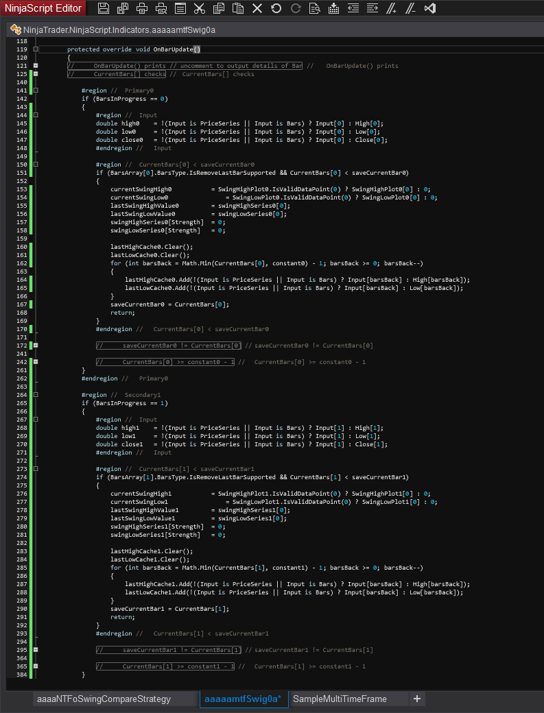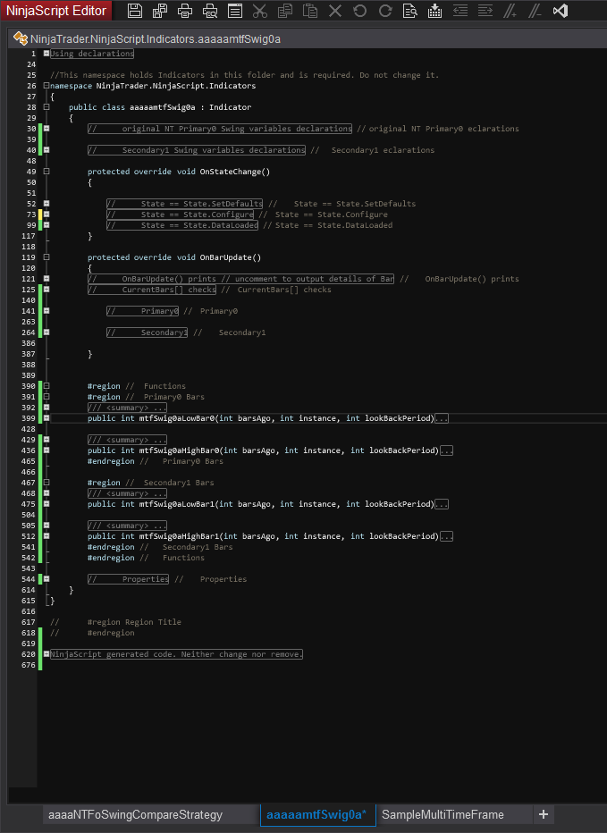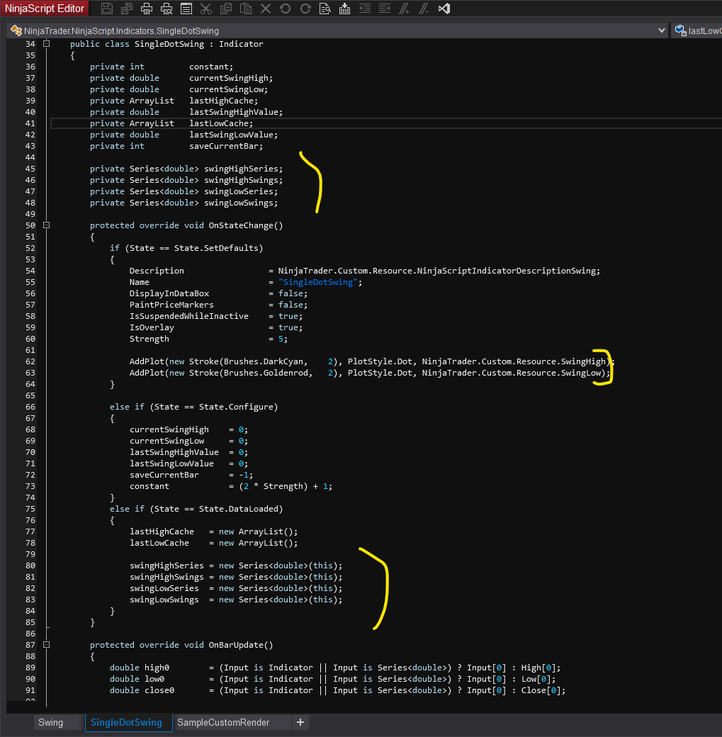 We tried to screenshot an overview of the code of the modified swing indicator.