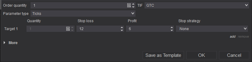For example: Lets say ES current price is 4442, I know there is resistance at 4448, so I want to tell the system to take SHORT/SELL MKT as soon as price reaches 4448 price and book profit at 6 ticks and book loss at 12 ticks.