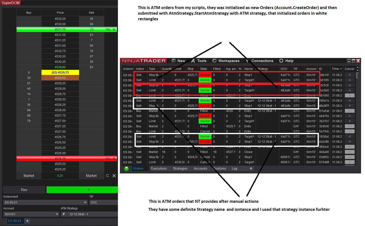 Original NT behavior is to add/remove orders and orders' Strategy field is pointed to the used ATM. Adding/removing is correct solution to provide the fastest execution of orders.