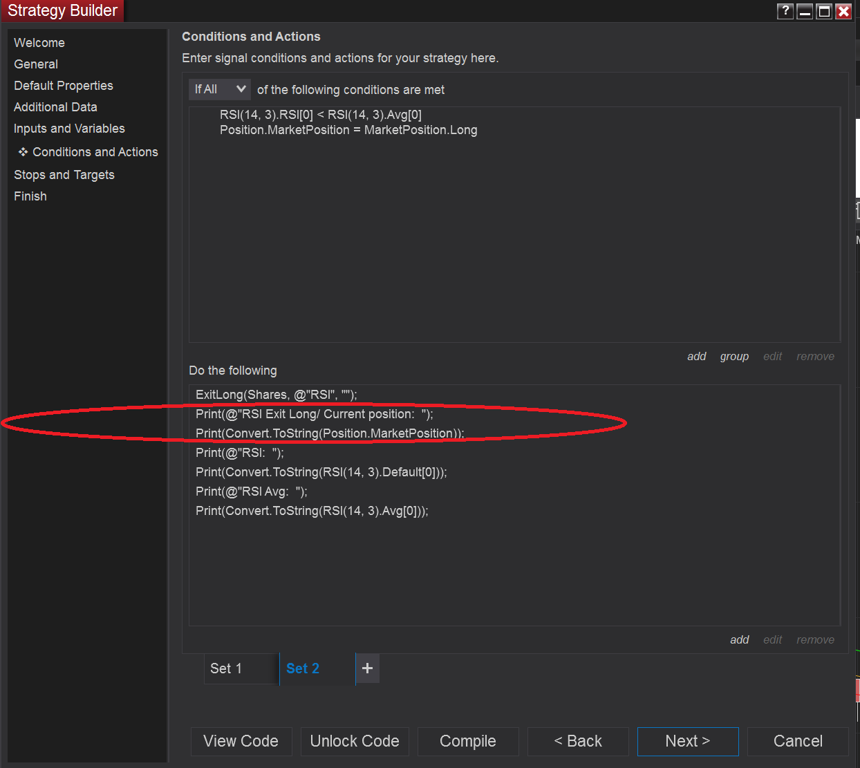 A note on the prints would be that you are trying to print the enum and not the actual position. To print the position you would need to select the Strategy - Current market position. That would end up looking like this: