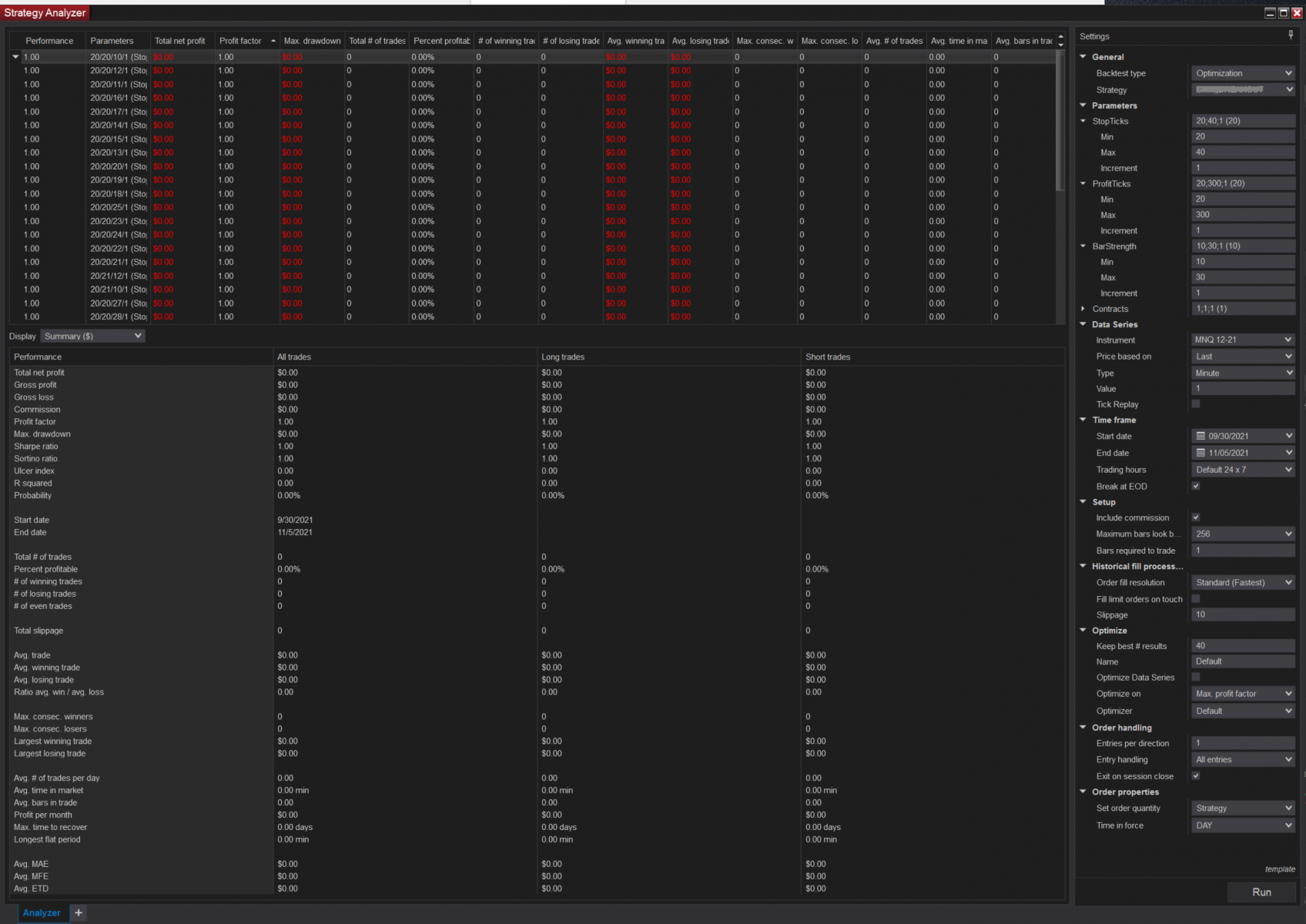I would think just off the built in Stop and Profit Target alone it WOULD have something to analyze and report!!!