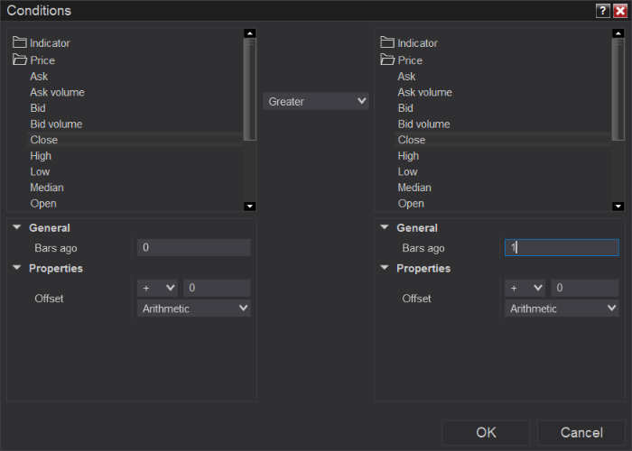 Then, you could create an action of something like EnterLong() to enter a long position when the current bar is greater than the previous bar.