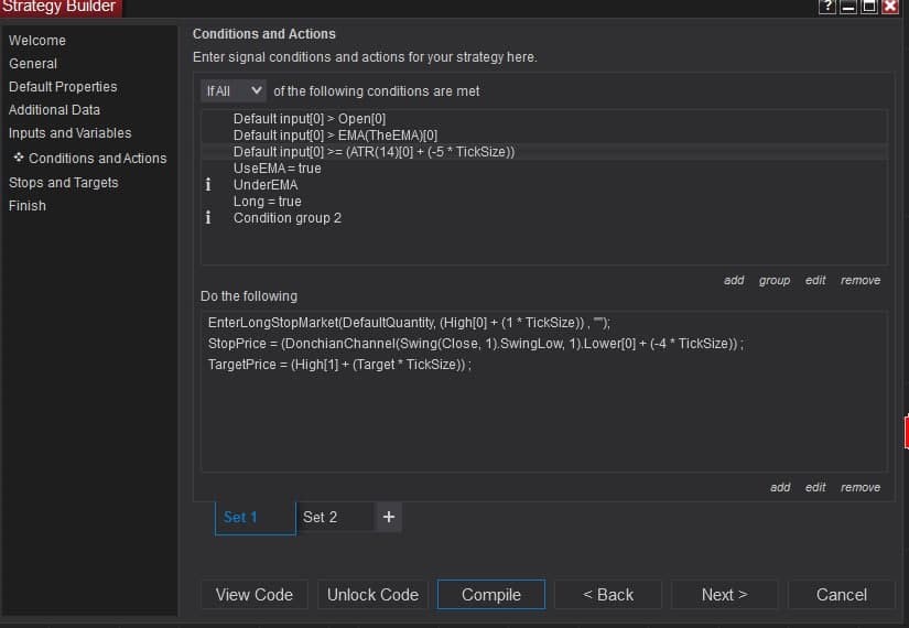 In looking at your stop price you are using the value of Donchain Channel lower plot based on the Swing indicators swing low. I would suggest that you print out the value of the determined stop price to best understand, bar by bar, what this value actually is and verify it is as you expect it to be. Here is a short video on how to construct a print statement in the Strategy Builder and output the values of an indicator: https://paul-ninjatrader.tinytake.co...MV8xMDk0NDIxMQ