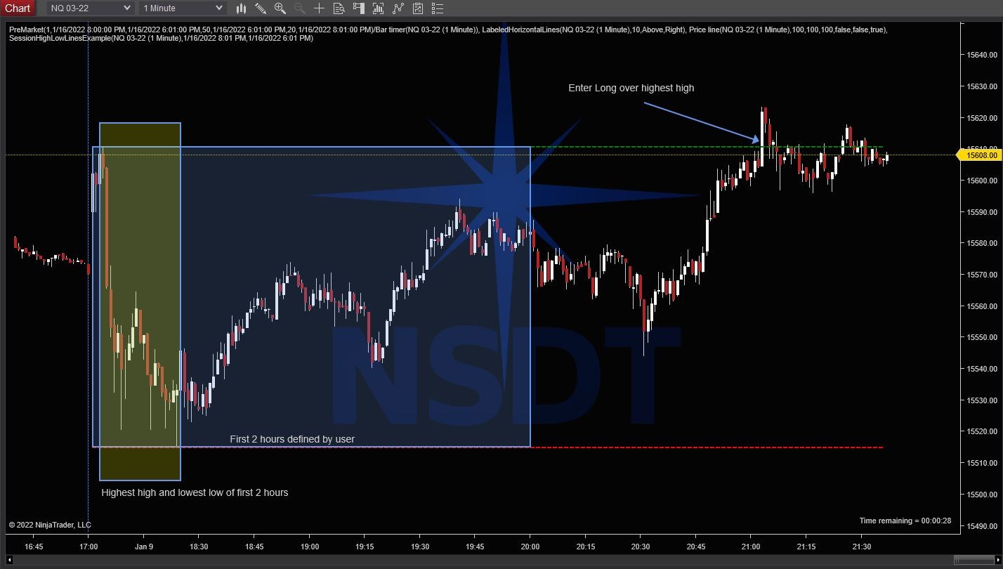 2. Strategy finds the Highest High and the Lowest Low within this specified time range.