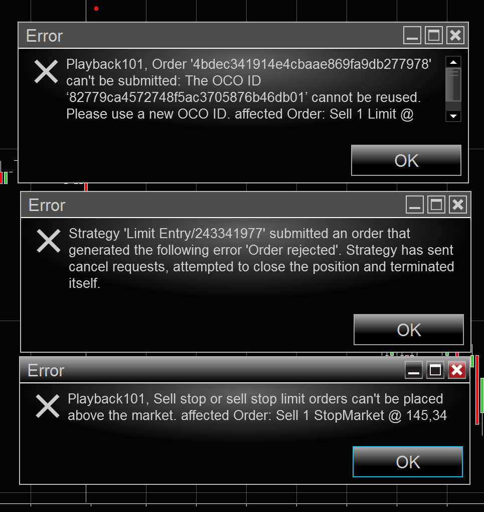 Please note that this is reserved for advanced uses that want to implement their own order error handling. Neglecting to handle an order error when having RealtimeErrorHandling set to IgnoreAllErrors or StopCancelCloseIgnoreRejects can result in damages to your account. ALWAYS monitor your automated trading strategies.