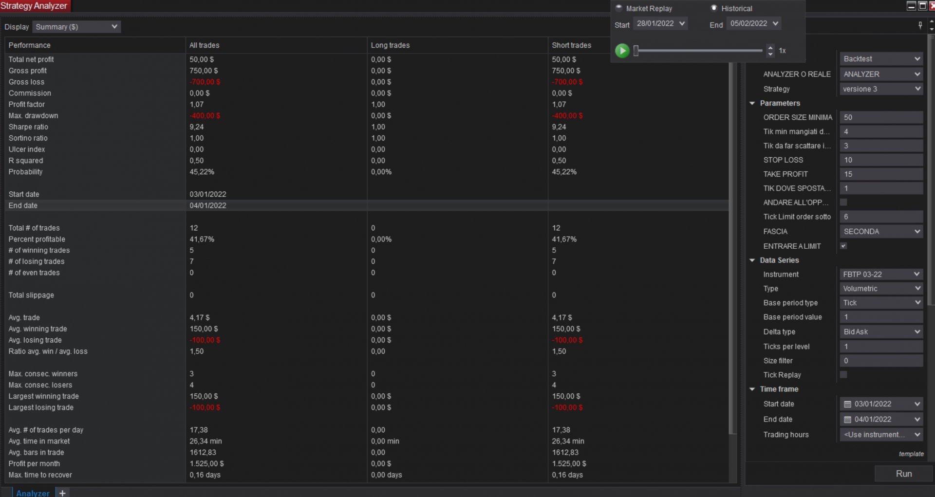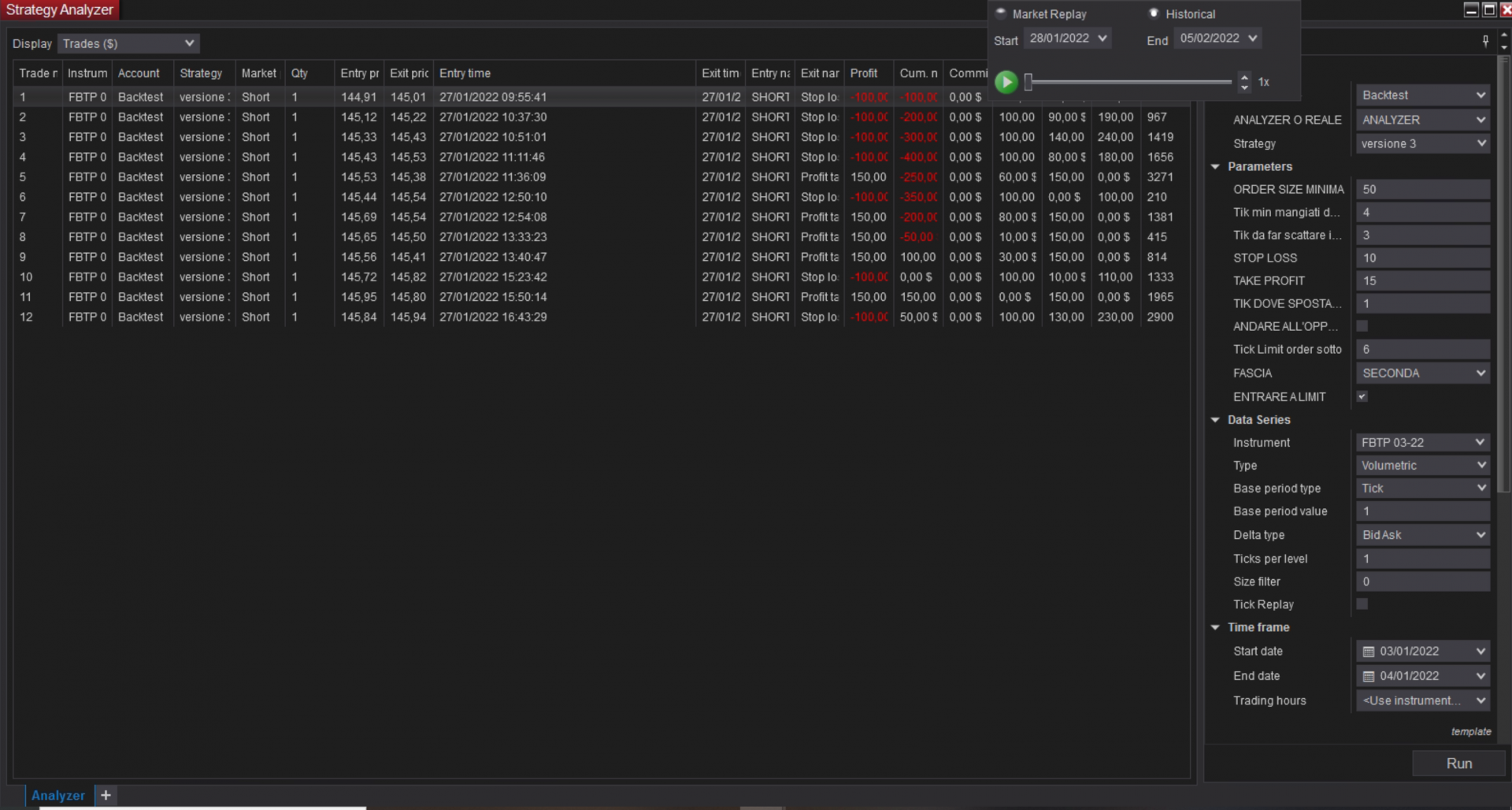 Hi, when i run a simulation on the analyzer and on the playback the strategy gives me different result and does not do what it's supposed to do when i use the analyzer. If i check the playback it's all correct, so i don't understand what is the problem. Also when i run the analyzer and i choose a period in which to run the backtest when i check the data of the exectuted trade they are outside of the time window that i selected. As shown in the picturesTags: None