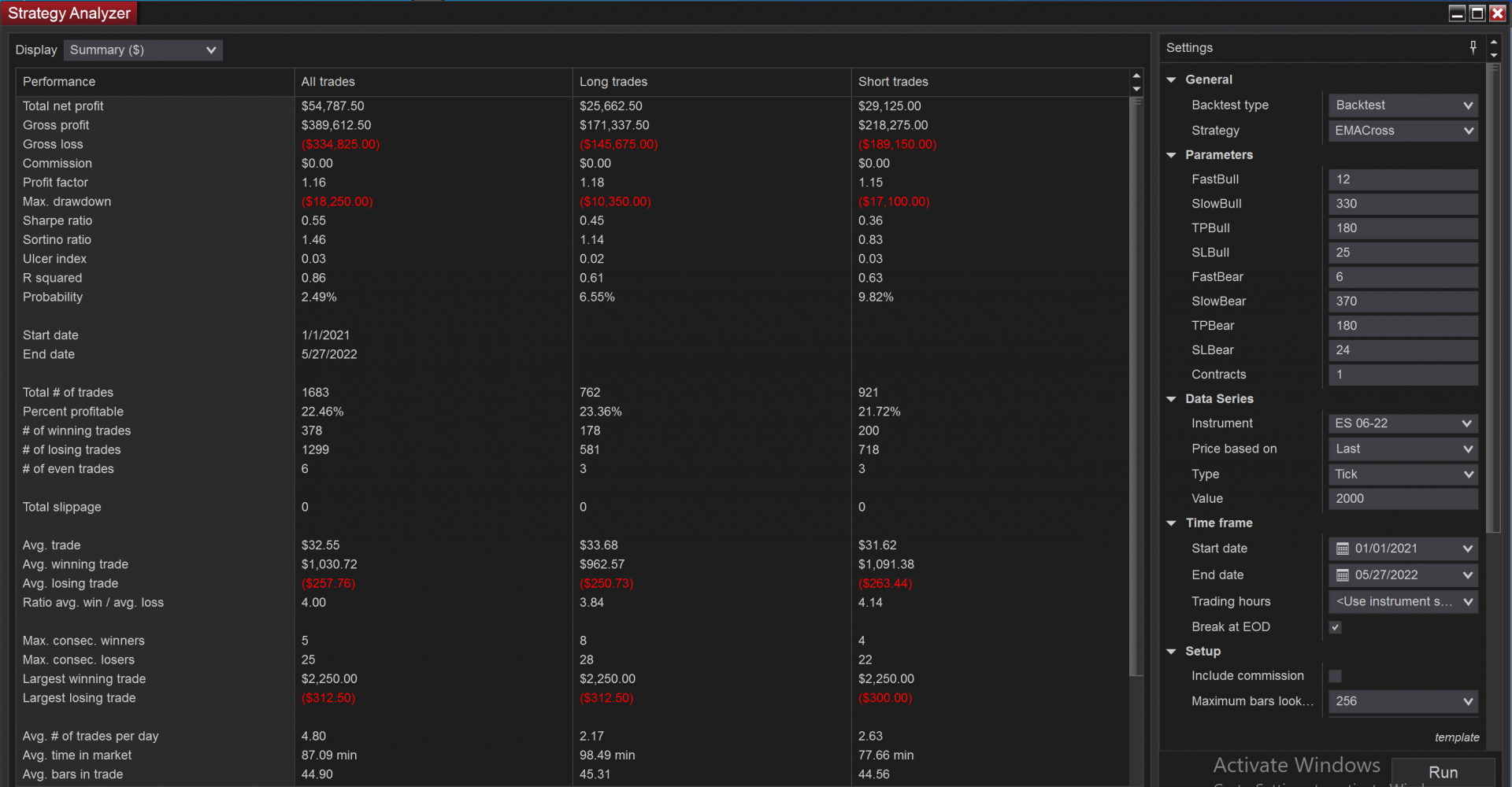 And also remember that certain bar types (e.g. Renko) do not work well in the Strategy Analyzer if you are making any reference to those types of bars in your strategy.