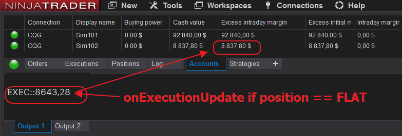 task: to get the data of the excess intraday margin at the closing of a position