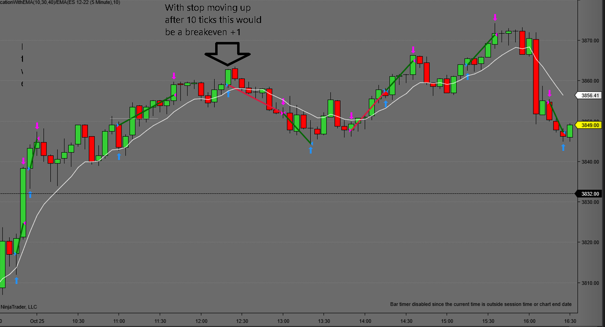 Is it just possible to have a set target in place and a stop that starts out -40 ticks which moves up to breakeven +1 after price goes 10 ticks?