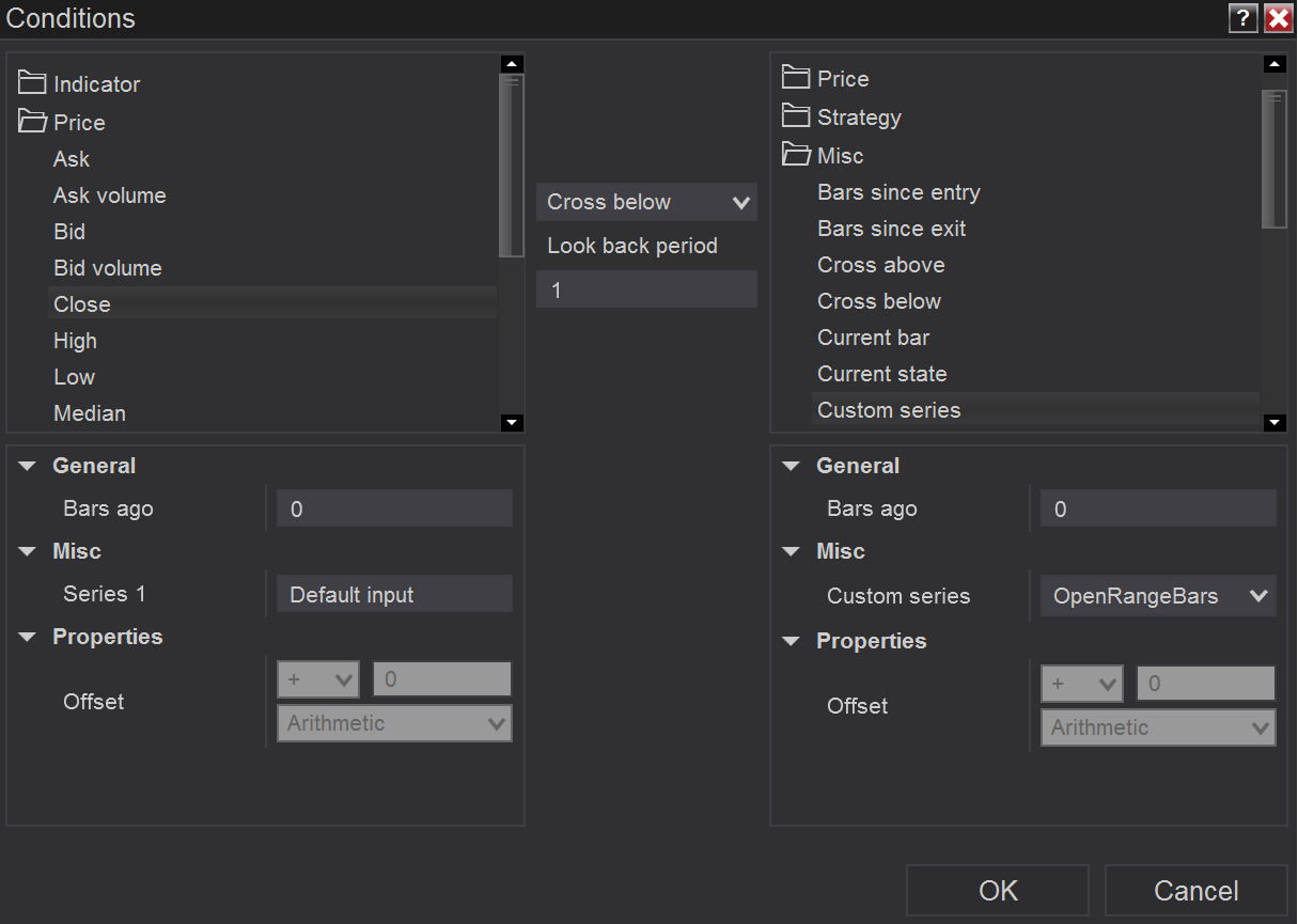 I would set it to enter long if price goes above the high of the custom series and