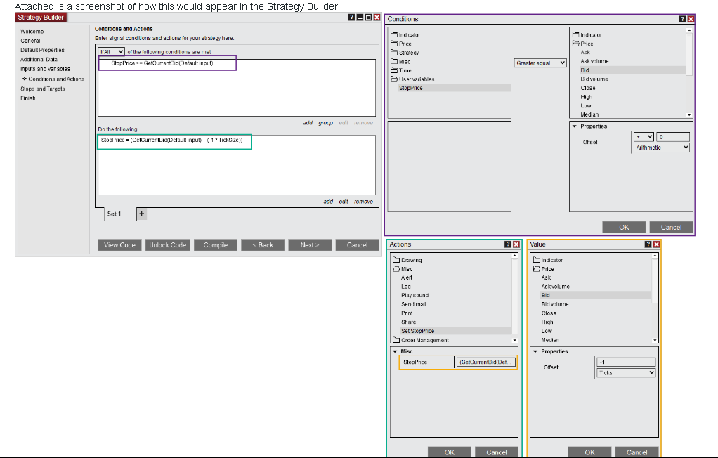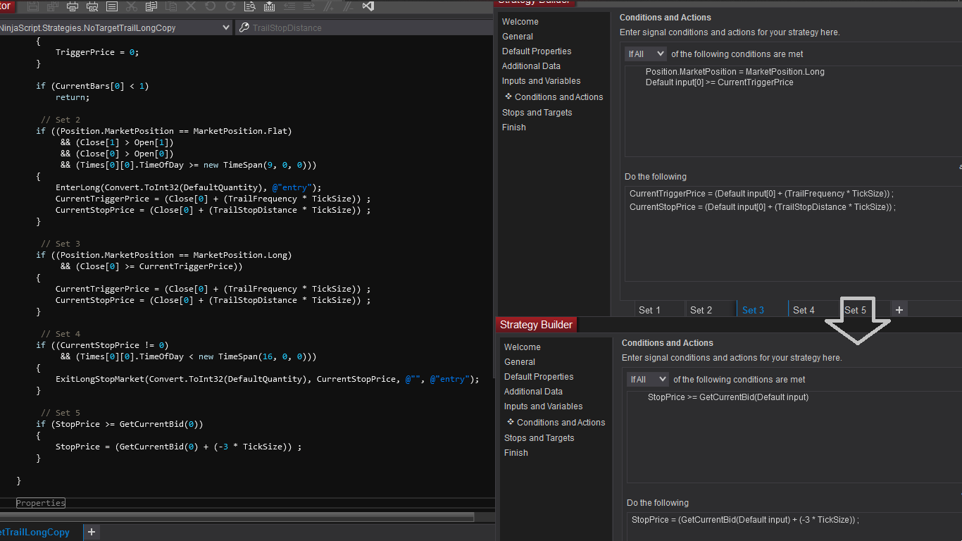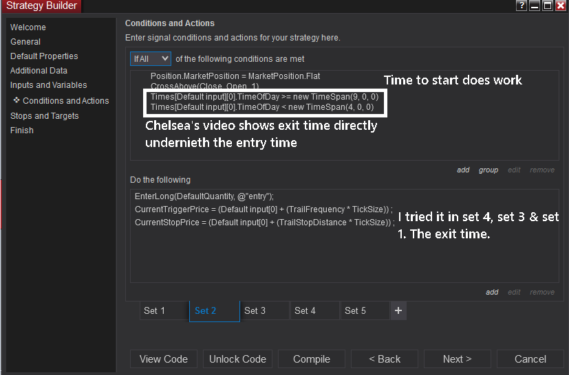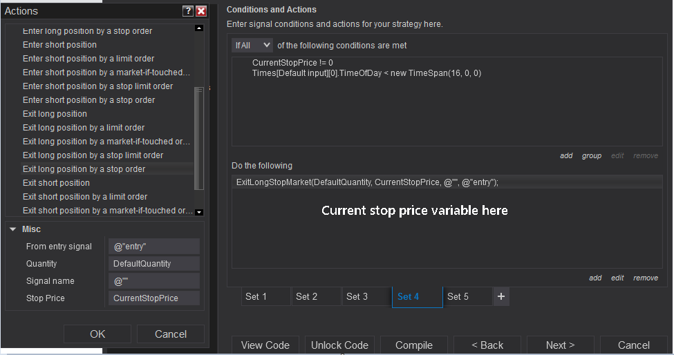 The entry works great but exit I need to tell it to stop, not to start. I want to have this in there before I copy & unlock it so I can add a reversal to the trailing condition.
