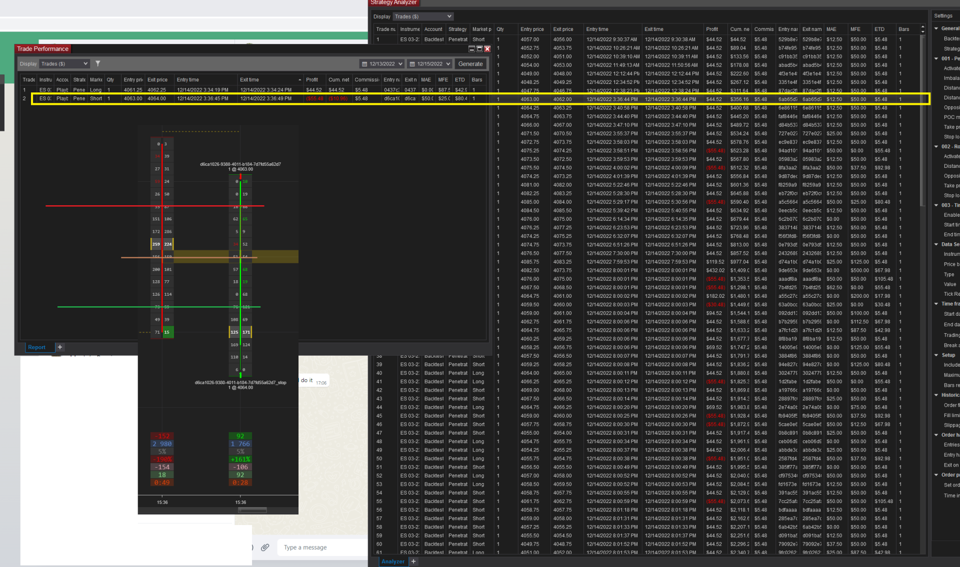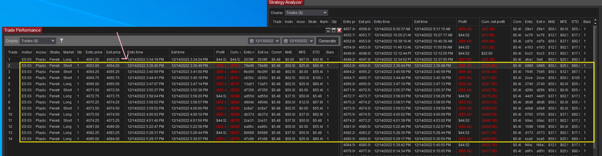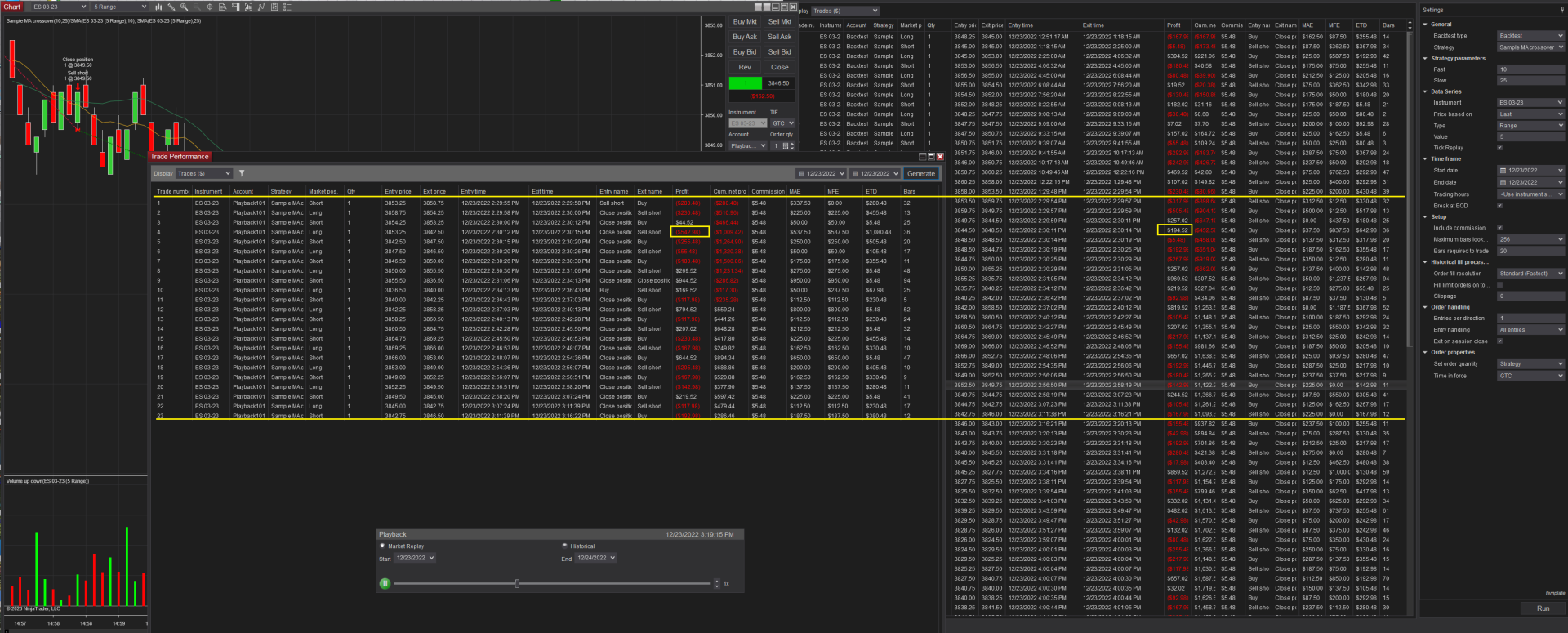 1 - I run a backtest on NQ Market using NinjaTrader Continium data on day 12 jan 2023 using strategy analyzer, then i got a list of (hypothetical trades and performance results)