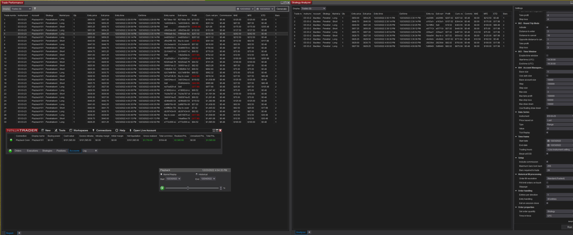 Now I noticed when the difference is happening, I get tons of different trades between Playback or Sim and Backtest in times of Super High Velocity and Volatility, usually US Market Open and Close, but the difference is really huge, for example I got only 8 trades on backtest, while I got 30 trades on playback, using the EXACT same everything, data, day, strategy, parameters, time period, time frames .... everything is the same, now I understand that dur to the high speed of candle forming, and (hypothetical latency) that Backtest or Playback could execute trades with could impact the entry or exit timing in each trade, but my question is :