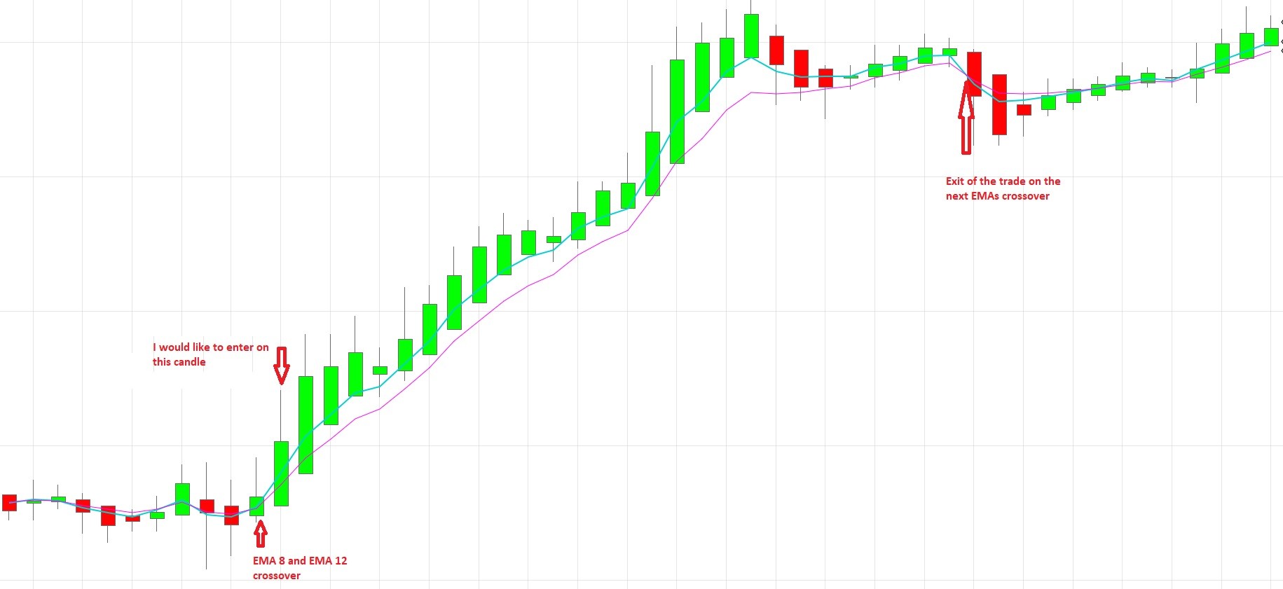 I would also like to have some help on setting for my trade exit which is the next 2 EMA cross.