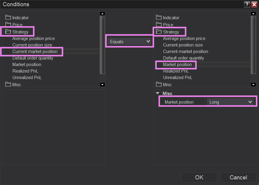 An example of checking if you are in a Long position could be seen in the image attached.