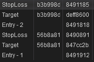 The other utility for the orderId is to create the Stop Loss order and the Target Order, so I have one of this for each entry, so I'm using the order id of the entry as the oco id of the target and stop loss and in the next image you can see that the ids are different.