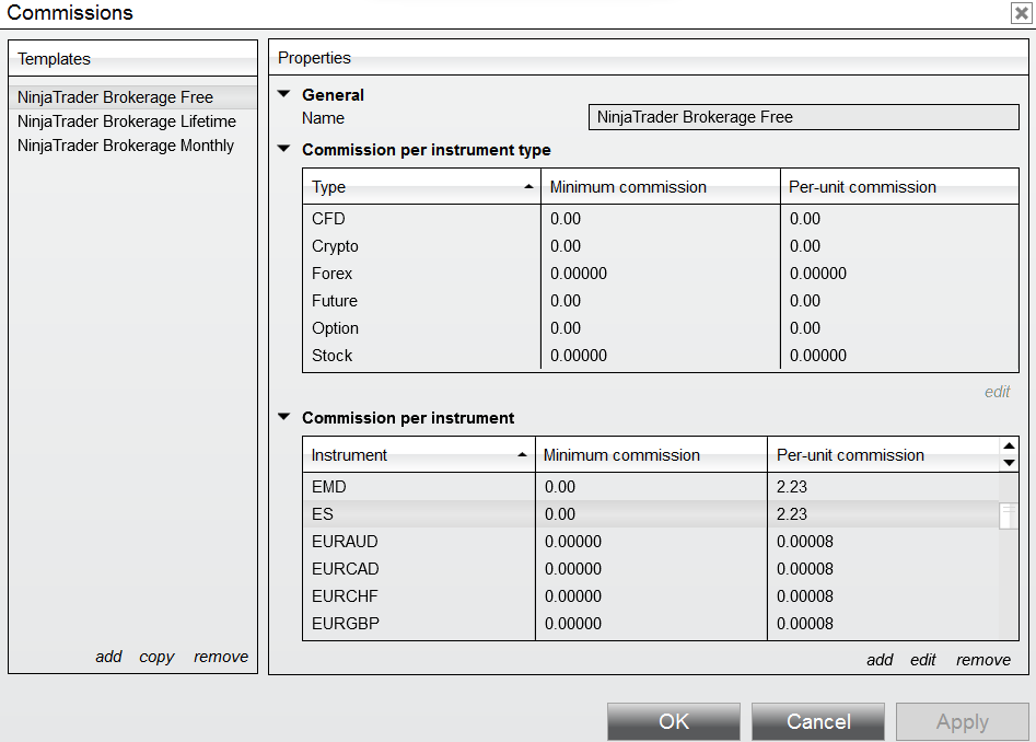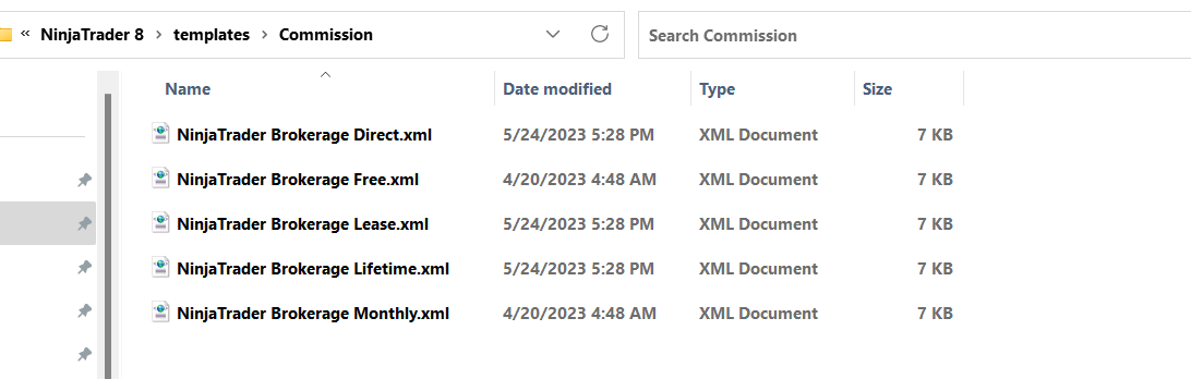 Go to Documents\NinjaTrader 8\templates\Commission