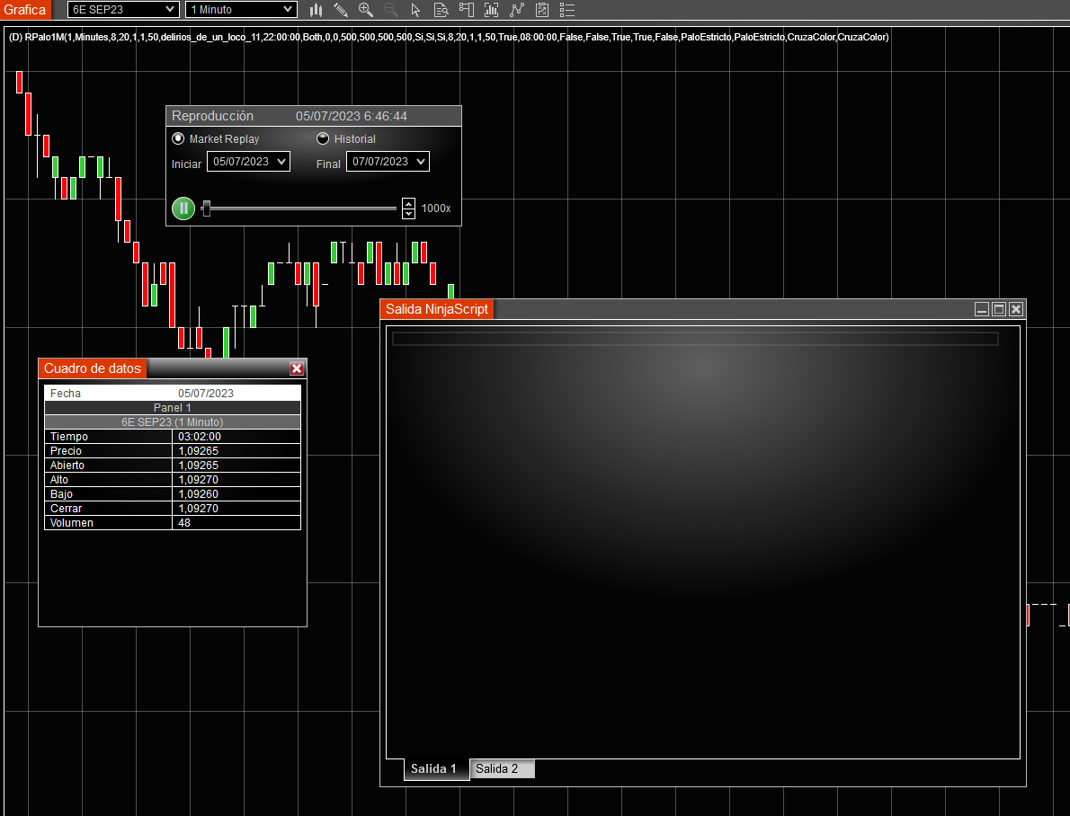 I set my strategy on 6E chart on market replay and start execution.