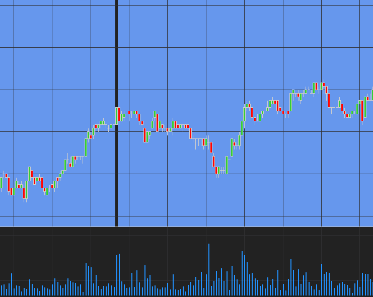 The logic is, draw backbrush (cornerflowerBlue) if volume in bar -1 is larger than the double of bar 0