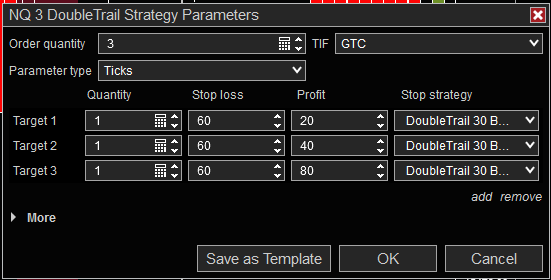 My actual trouble is that I am trying to add an ATM strategy to a strategy that doesn't have multiple orders/trailstops. Is it possible it get a sample code for the ATM strategy that I attached as a picture? I can't seem to find the correct verbiage. (Three Orders, Stoploss, Profit, Breakeven, and double trailstop.) It seems simple enough when I use the manual entries