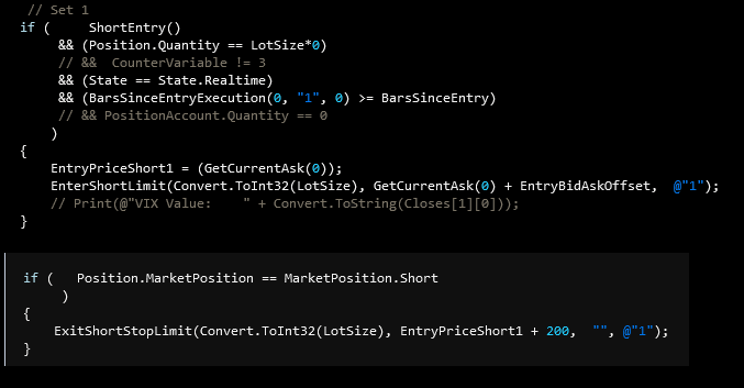 Here is the Shorts code block: it is the exact same as the longs code block but reversed logic for shorts