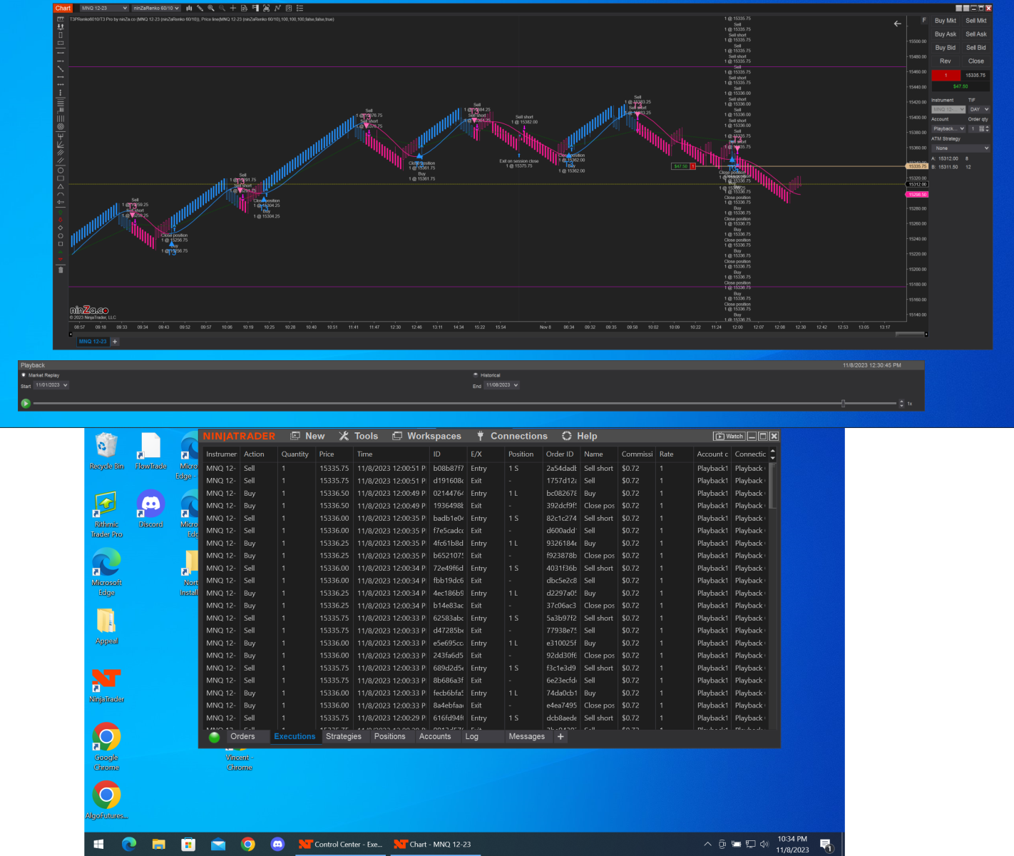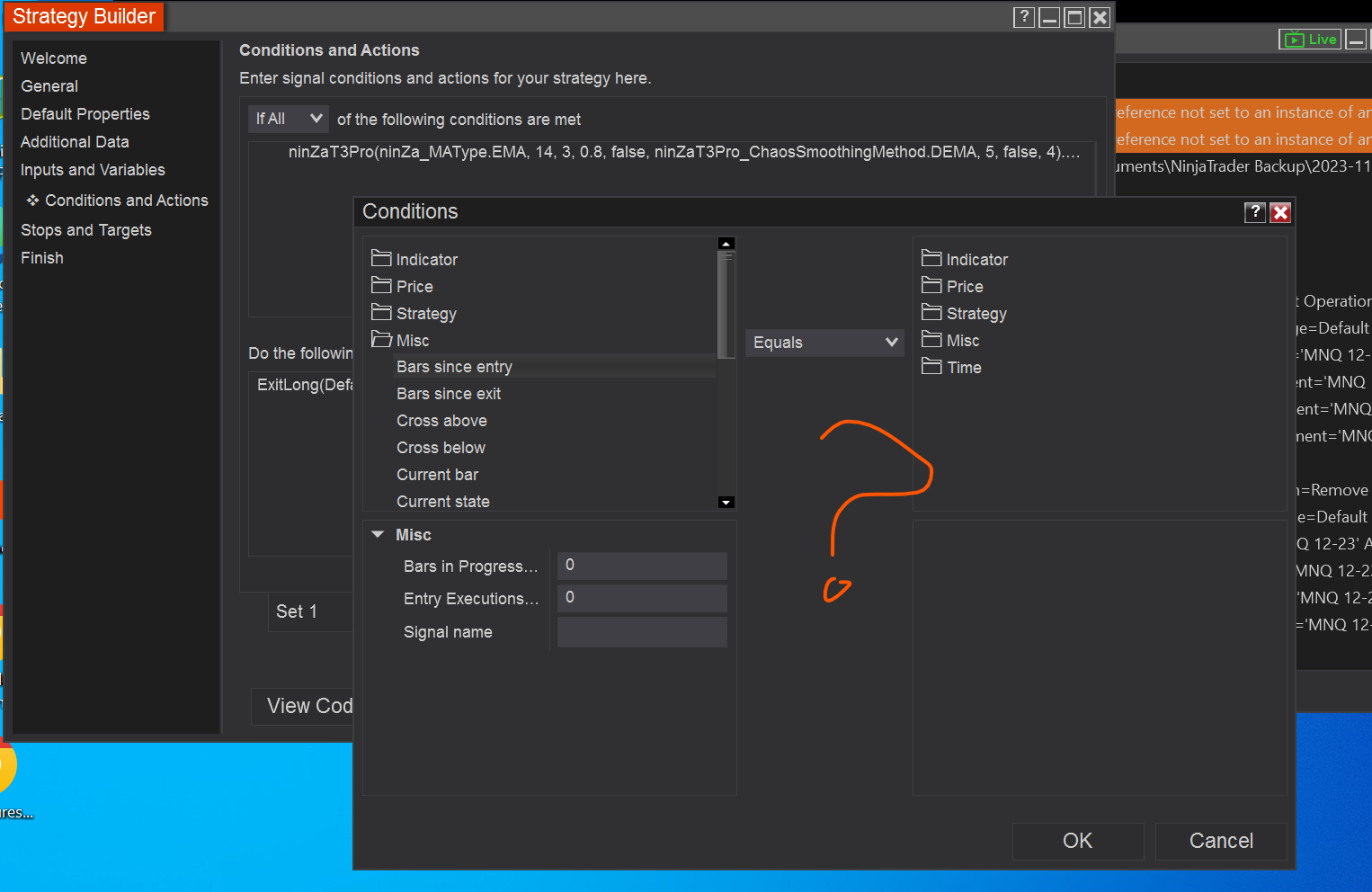Hi Jesse, I've tried to figure out how to use the BarSinceEntry in strategy builder and looked at other posts here. But I really can't make heads or tails of how to set this up as a condition to avoid my problem. Is there a video link to a specific tutorial for this? Another idea could be some way to have the Buy trade close - wait a few ticks - then open the new Sell trade. Maybe this would avoid the looping issue? Or maybe run two different strategies. One Long, and One Short? Due to the Renko bar size, I do want to avoid trading at Bar Close or next Bar.