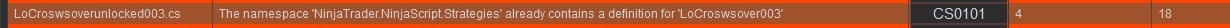 The CS0101 error would indicate that the class name LoCroswsover003 has been used in another file. Likely the LoCroswsoverunlocked003.cs file (the file referenced in the error), the class name does not match the filename.