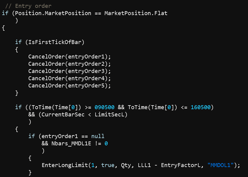 EnterLongLimit(1, true, Qty, LLL1 - EntryFactorL, "MMDOL1");
