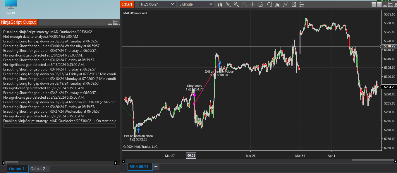 I'm working on a strategy that will detect a gap in the S&P500 index, and then enter a MES long or short order at a specific time. It does seem to work for the most part. However, today it did not. I'm thinking maybe it's something to do with the recent market holidays.