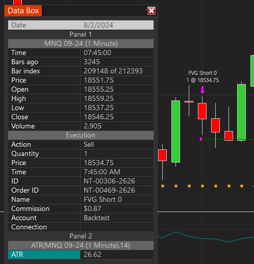 8/2/2024 7:40:00 AM Strategy 'SupplyAndDemand/-1': Entered internal SubmitOrderManaged() method at 8/2/2024 7:40:00 AM: BarsInProgress=1 Action=SellShort OrderType=Market Quantity=1 LimitPrice=0 StopPrice=0 SignalName='FVG Short 0' FromEntrySignal=''