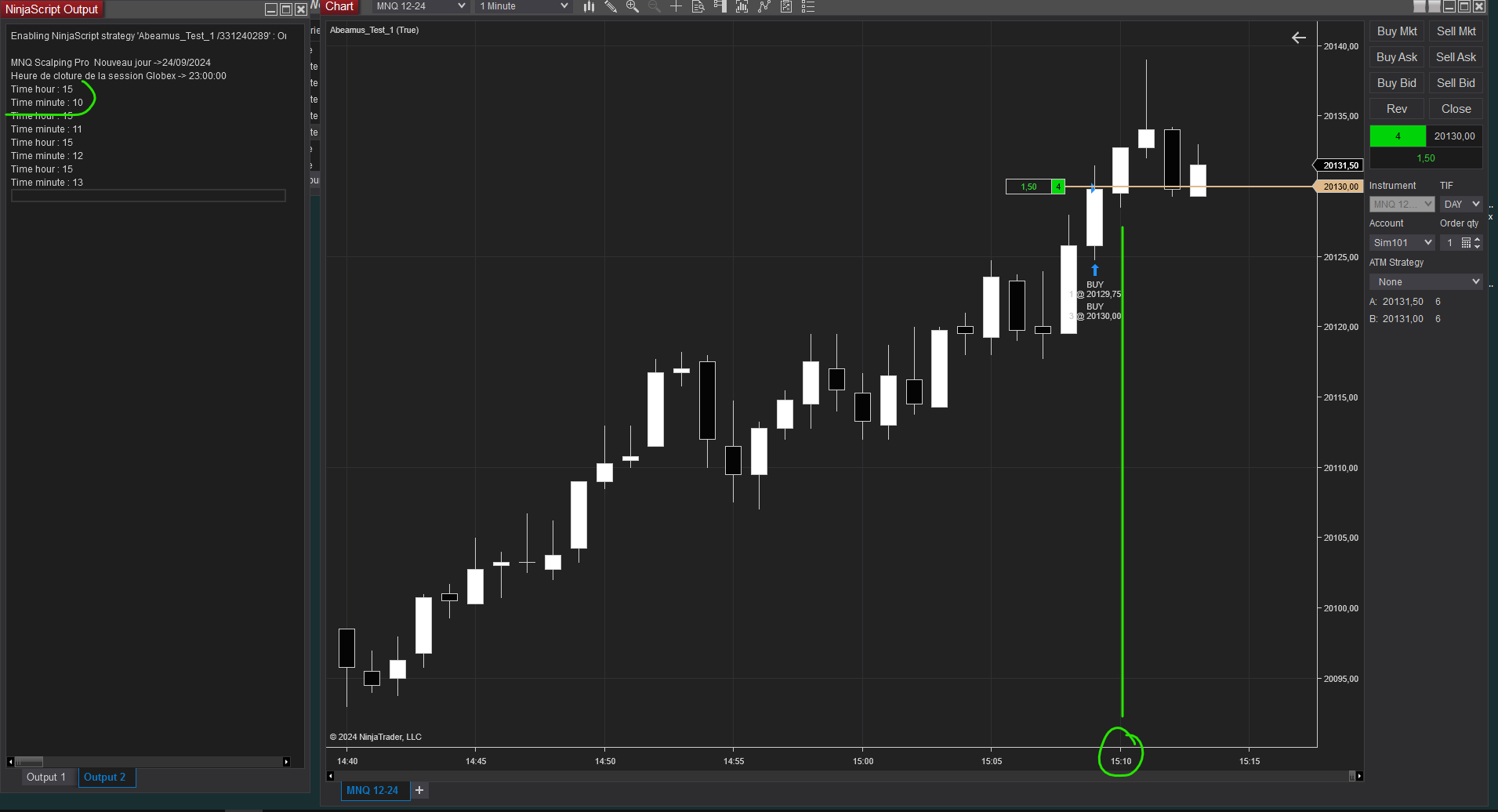 The chart is live and is set to ‘OnEachTick’ with ‘1 mn’ candlesticks bar.