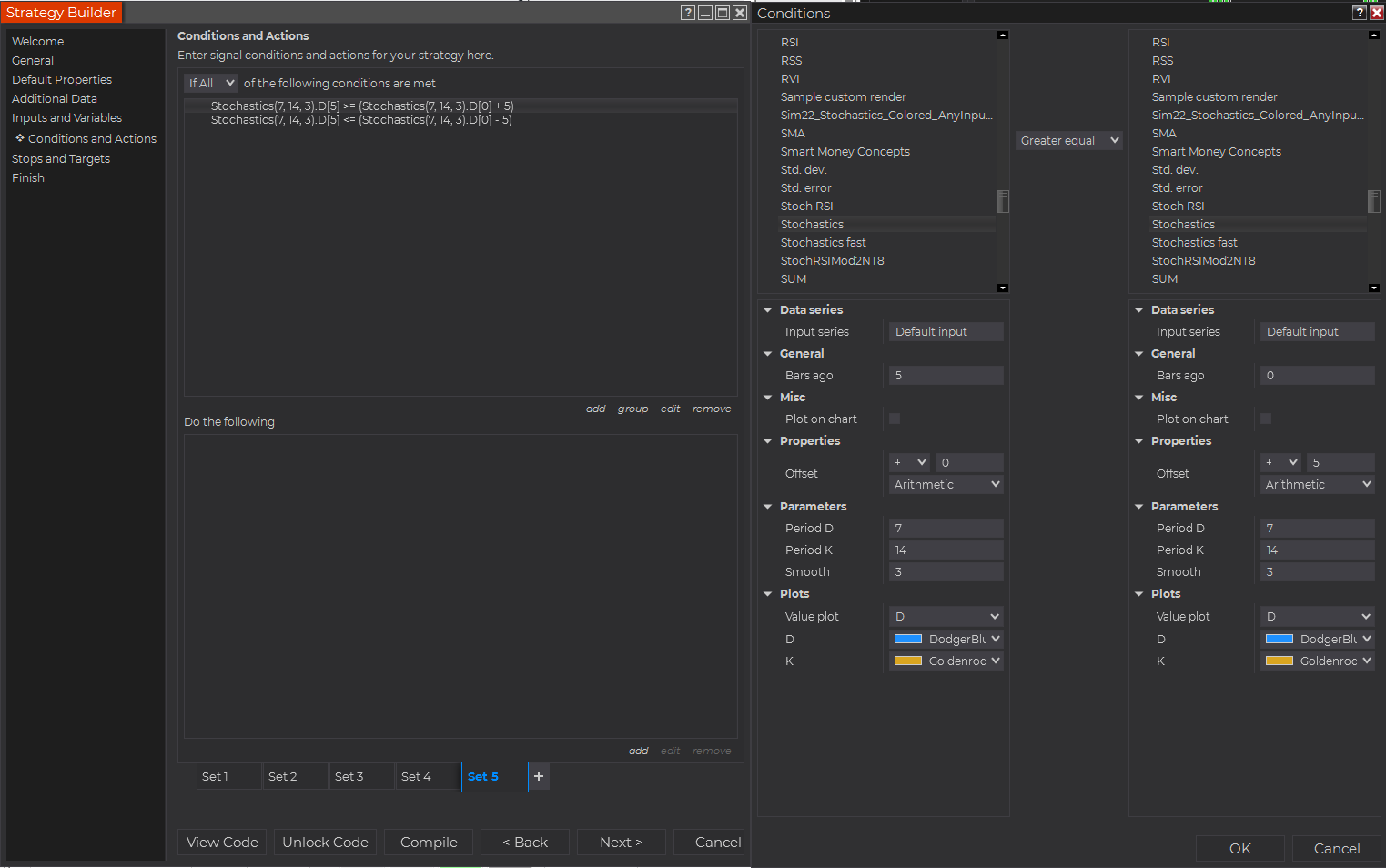 I can't just program it for a specific range because sometimes it's in the 50's, others it's on the 40's or 60's, and often a good trade occurs as the D line passes through one of those ranges. It's the flatline that's the issue.
