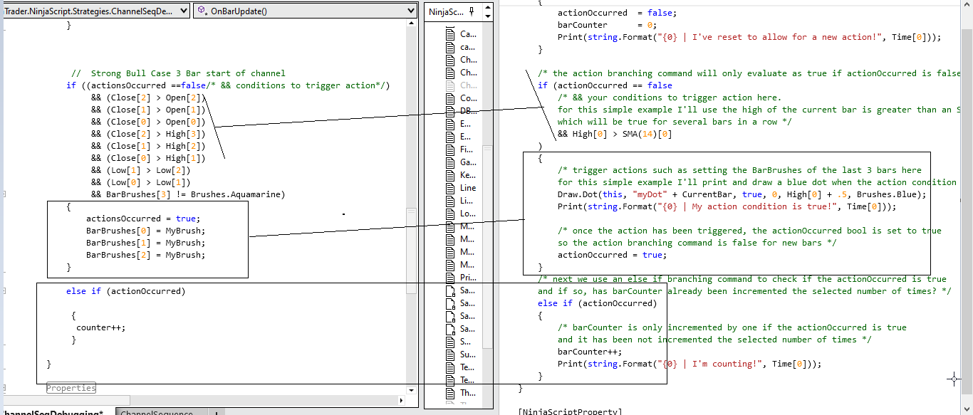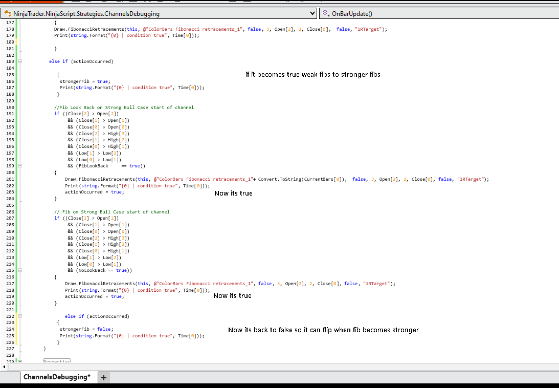 if ((actionsOccurred ==false/* && conditions to trigger action*/)