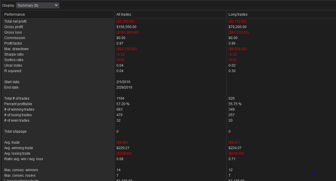 So here is an example. I just made up a quick MA cross over with long and short using market orders. The first file shows the Summary screen with no slip the second shows the Summary screen with the slip applied.
