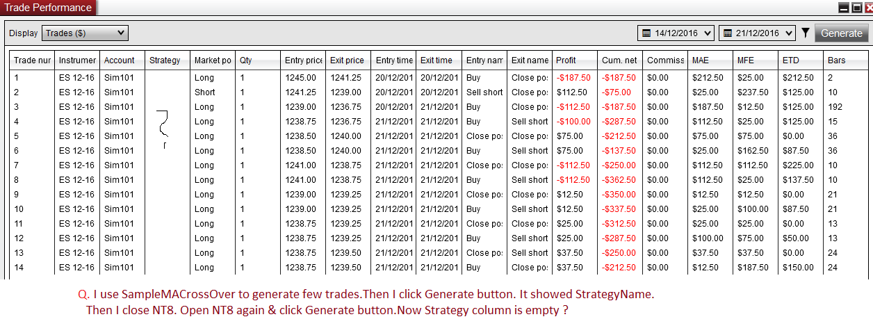Later I close NT8. ReOpen NT8 again & click Generate button.Now Strategy column is empty ?