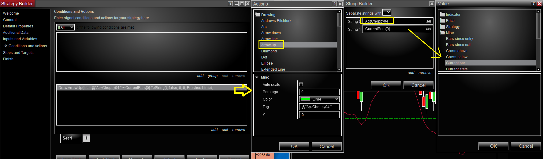 As you are using the strategy builder, I've added two screenshots: