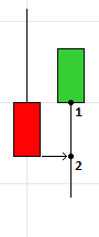 A. Close[0] > Open[0] && Close[1] < Open[1] then EnterLong