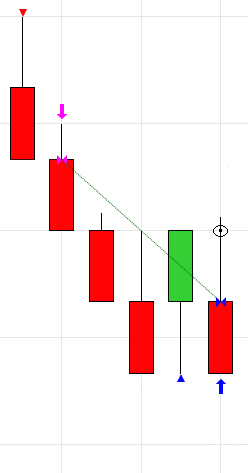 B. Close[0] < Open[0] && Close[1] > Open[1] then EnterShort