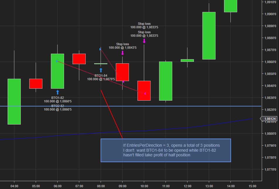 This solution doesn't work for me. I need to create 2 entry orders to scale out half of the position at a multiple of initial risk (as described in http://ninjatrader.com/support/forum...ead.php?t=3751 ), and don't want to open a new position if scale out of previous entry hasn't been filled. I want to avoid situations like the one shown in image.
