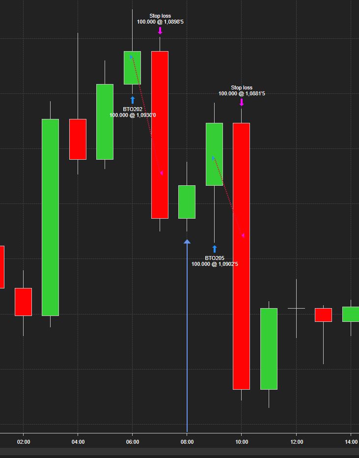 Attached is an example from Strategy Analizer with a long position (60 minute 8h candle). But if I look at a 1 minute chart, I can see that the price moved downside and should have triggered a short position instead long position shown in SA. In this second image the rectangle represents 60 minute 8h candle.