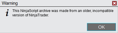 2) After that I made a zip file with your script and asked nt8 to import it, when I've got the warning you can see in the 2nd image (#2) -- which I guess means that if the script was from start in a zip file, NT8 would not accept it in the first place due to incompatibility.
