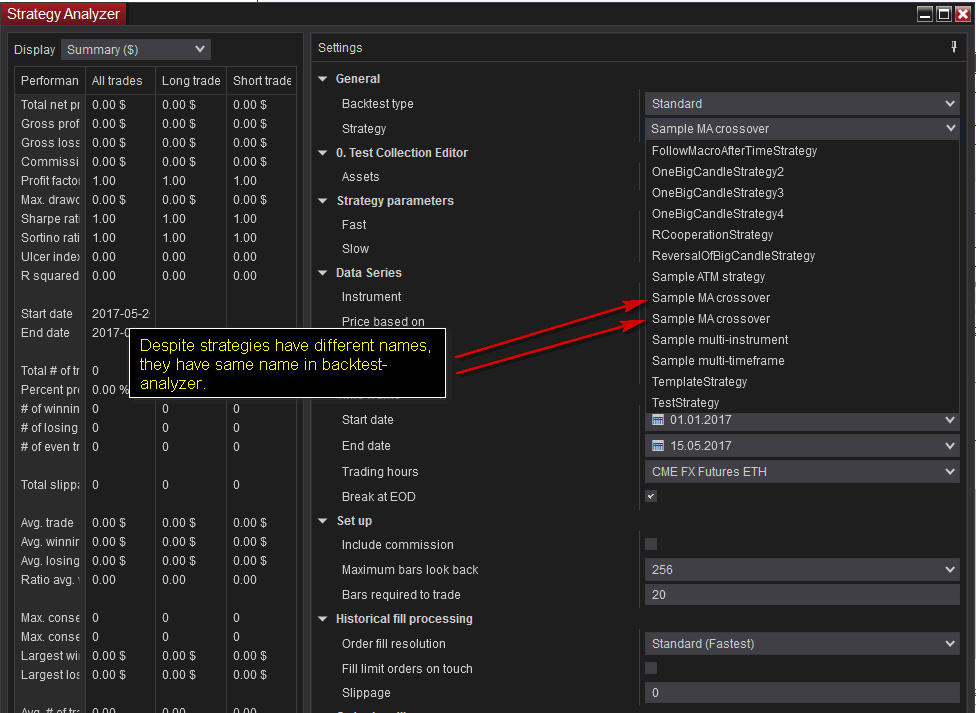 In reality, there are no 2 strategies with same name.