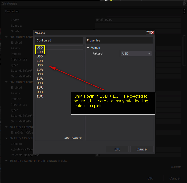 2. Check in GUI - property named Assets. It show 2 values initially - and this is correct. While there are no templates initially (after 1st compilation of any new strategy), it works fine = there is correct count of values in collection.