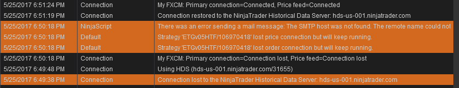 I got a log message saying I lost historical, price and order connection. I then got a message saying the historical and price connections were restored but not the order connection. How do I fix this?